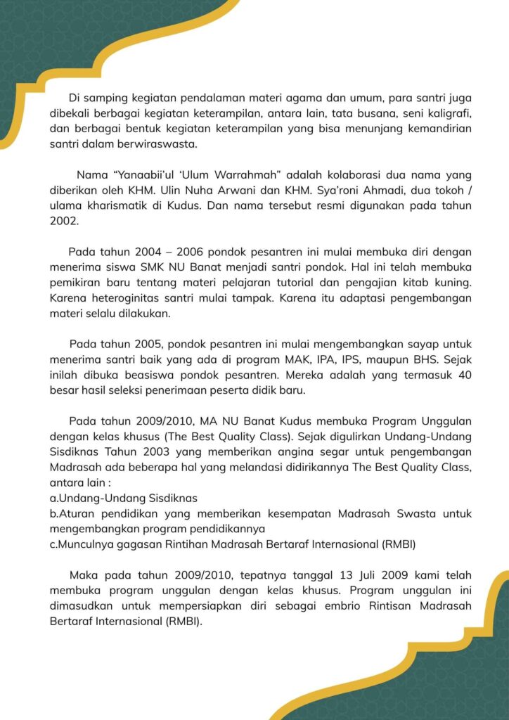 SEJARAH BERDIRINYA PPYUR – MA NU BANAT KUDUS